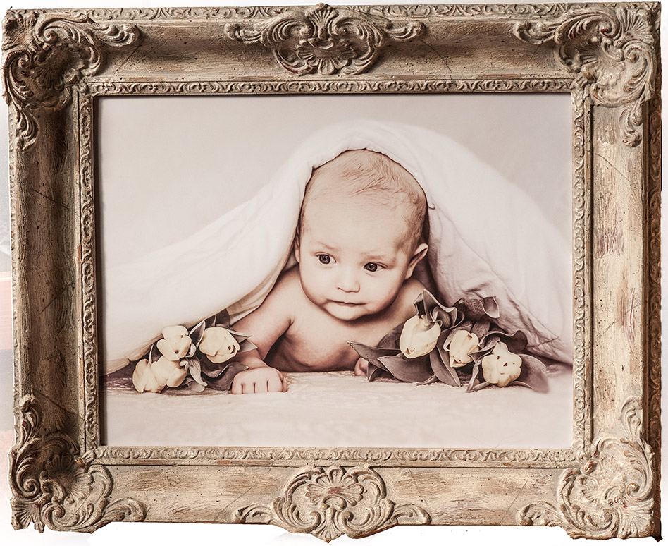 Na fotografii se nanese folie (laminace) , která ochrání fotografii před vybělením a mechanickým poškozením. Potom je podlepena bílou sendvičovou 5 mm. deskou ( kapa) .Potom stačí vybrat jen rám.